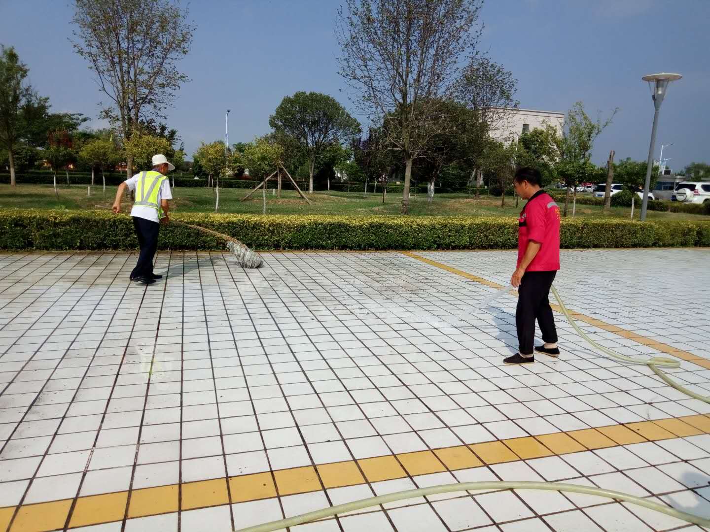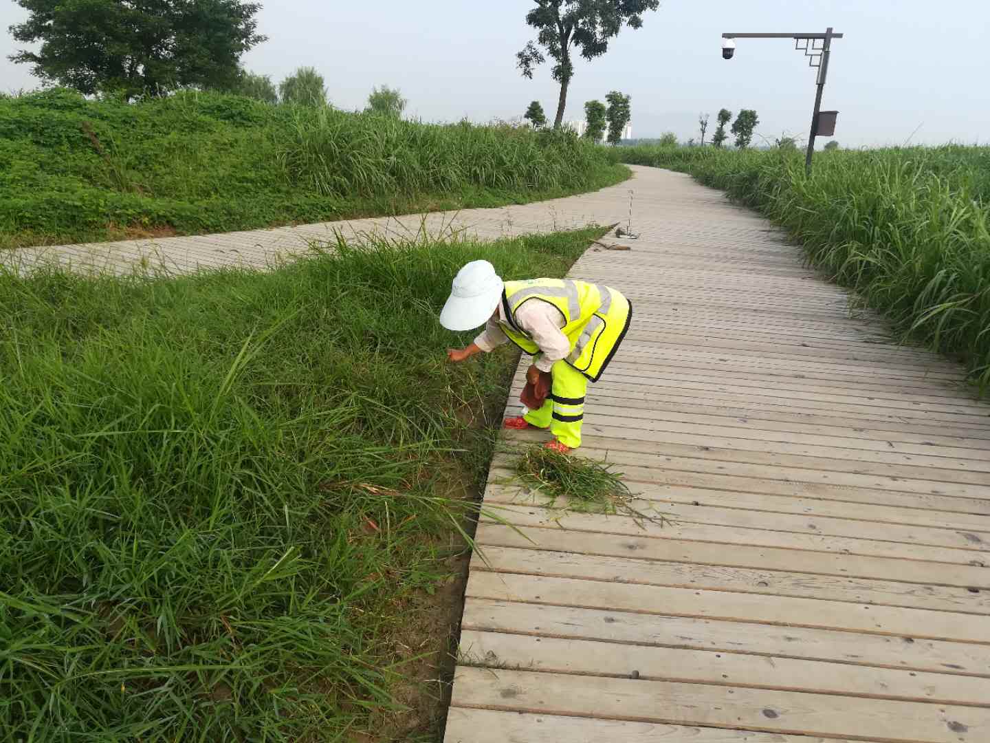 為了迎接更多的旅客,我們一線同事在驕陽下打理好《漢中會客廳.濕地公園》